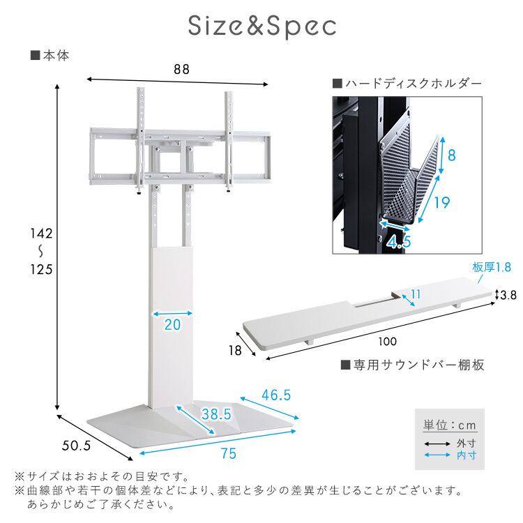 テレビスタンド:(約)幅88×奥行50.5×高さ125~142cm