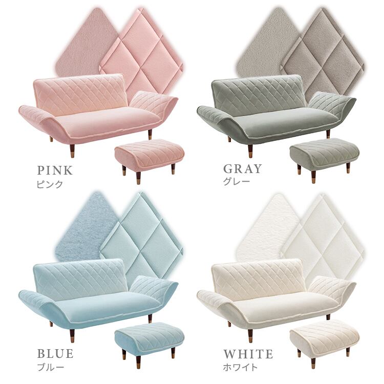 大人かわいい ダイヤモンドキルトカウチソファ オットマンセット 【Chammy -チャミー-】