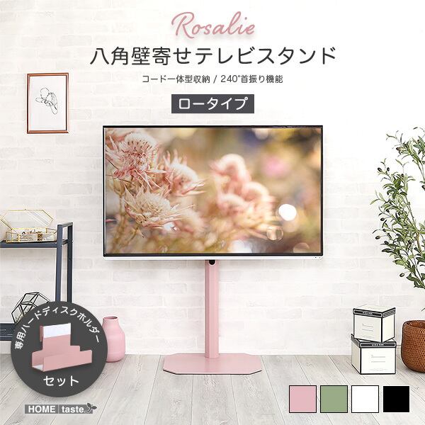 大人かわいいインテリア 八角壁寄せテレビスタンド ロータイプ 【Rosalie -ロザリー-】