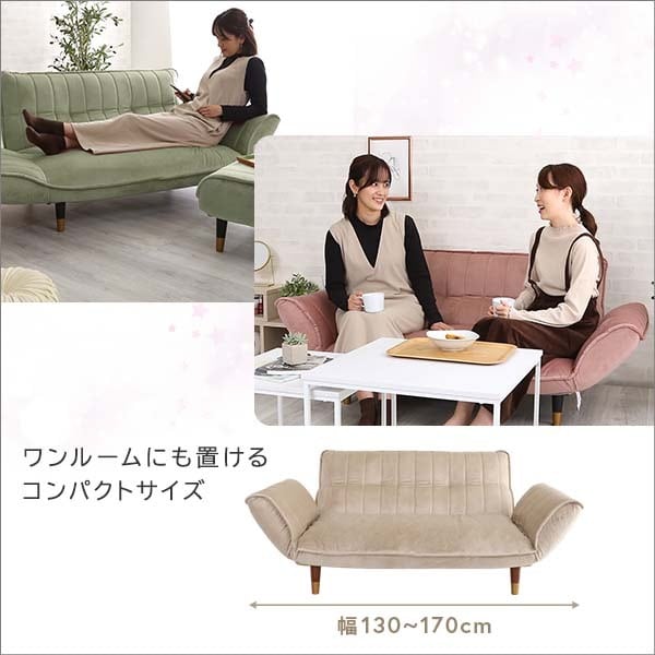 大人かわいい ベロアカウチソファ 2人掛け 【Chammy -チャミー-】 おしゃれインテリア