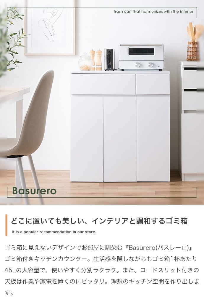 【幅75cm】Basurero ゴミ箱付きキッチンカウンター