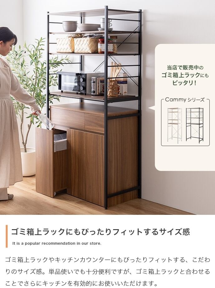 計算されたサイズ感で、ゴミ箱上ラックの下にも設置可能。